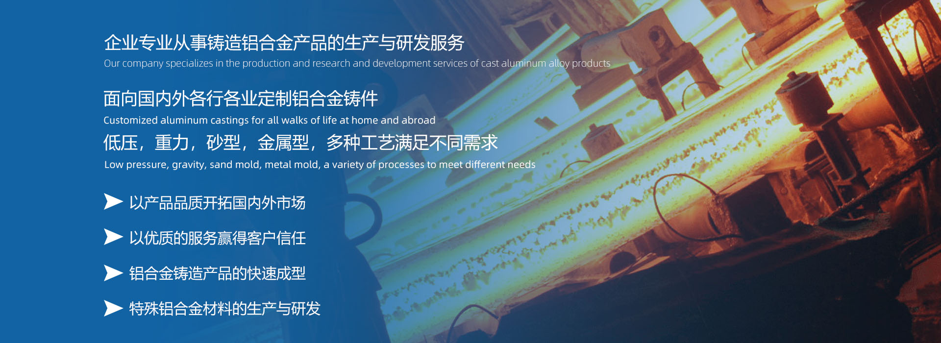 本公司致力于引進先進的鋁合金新材料和鑄造技術理念及標準,專注于鋁合金鑄造產(chǎn)品開發(fā)、生產(chǎn)和服務,緊緊圍繞技術創(chuàng)新,為客戶提供滿意的技術服務及優(yōu)質可靠的產(chǎn)品。堅持以鋁合金鑄造加工生產(chǎn)和服務為主體,建立、實施并持續(xù)改進質量管理體系,為增強顧客滿意不懈努力。產(chǎn)品廣泛應用于特高壓電氣組件、醫(yī)療器械、藥品包裝機械、汽車零部件、空壓機部件、高速機床、能源裝備及軍工部件等領域。